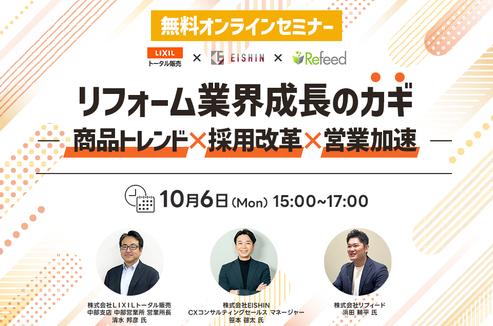 本セミナーでは、【商品トレンド × 採用改革 × 営業加速】をテーマに、業界の第一線で活躍する3社が具体的な解決策と成功事例をわかりやすくお伝えします。